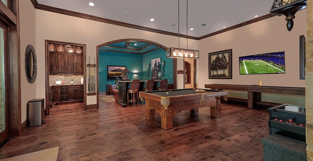 What sets this property apart is its ability to cater to all of your hosting needs. The possibilities are endless, with the dual island kitchen perfect for catering, an outdoor oasis with amenities for everyone, and an array of entertainment spaces for after-hours relaxation. The game and media rooms, featuring a convenient wet bar with an ice maker and beverage fridge, make for ideal settings for late-night entertainment with guests. The space offers an effortless transition from indoor to outdoor, making it perfect for any event or gathering.